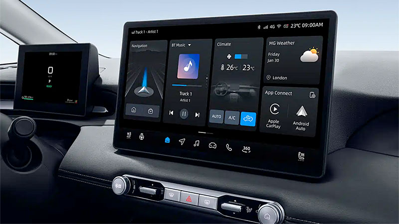 den Adapter in den Ladeanschluss des MG4 Urban und wählt im mittleren Bildschirm im