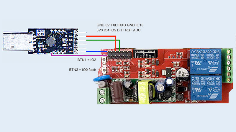 Um das WiFi Modul in den Flashmodus zu bringen, muss bei Booten BTN2